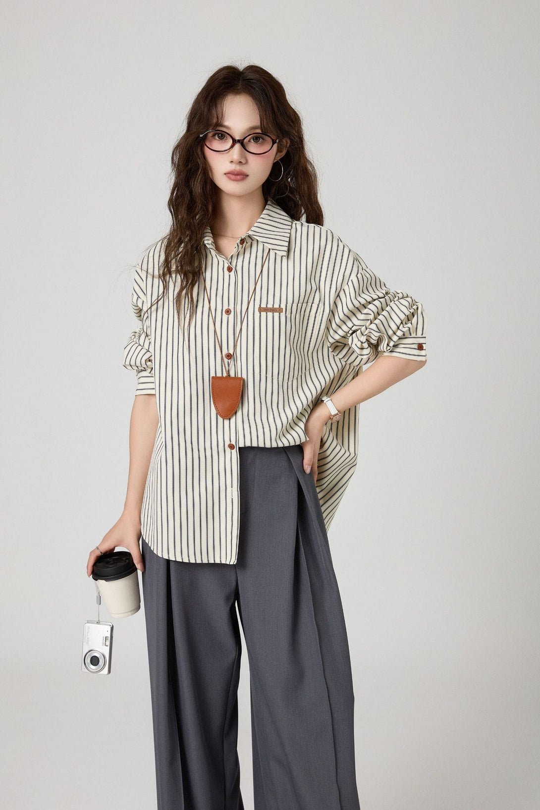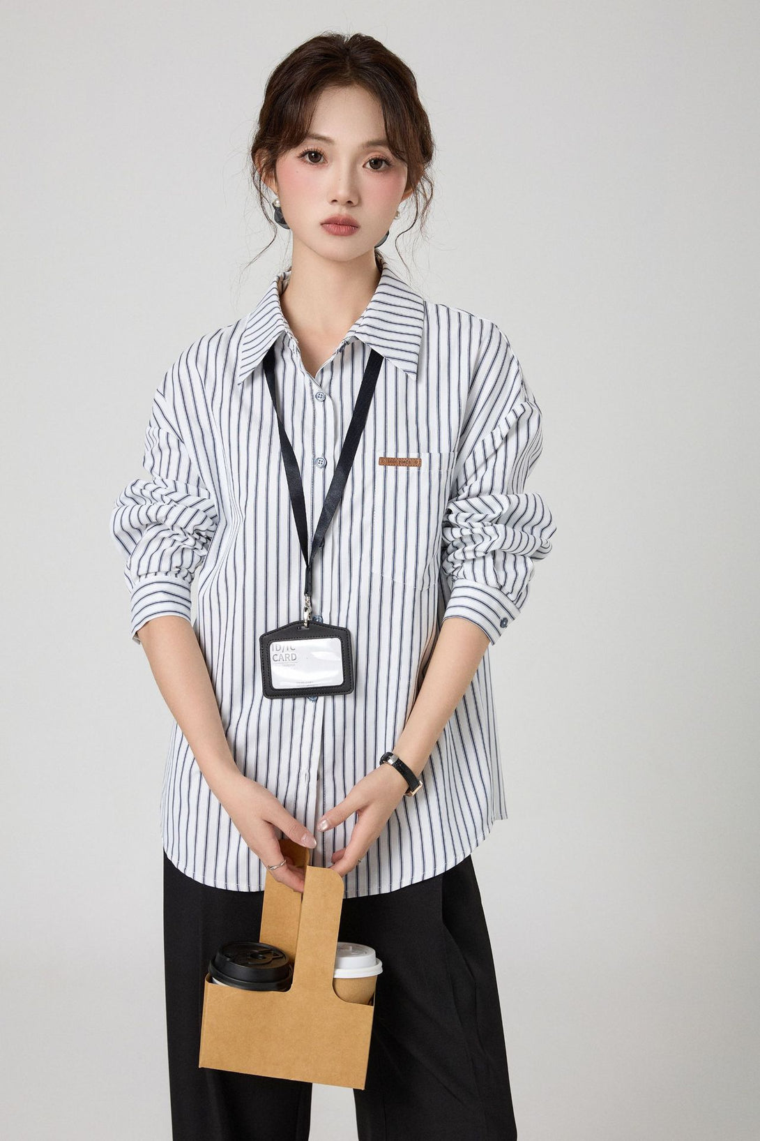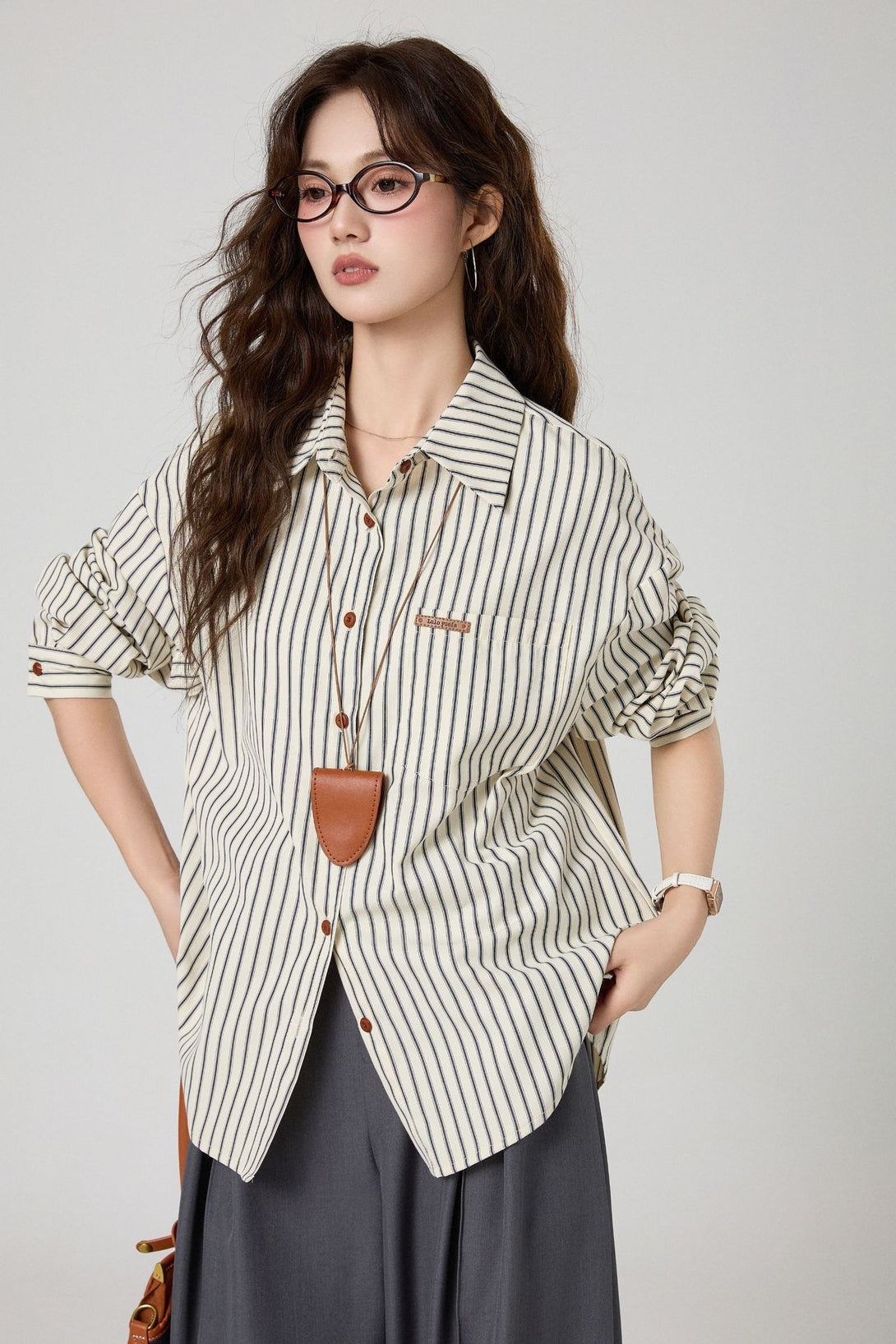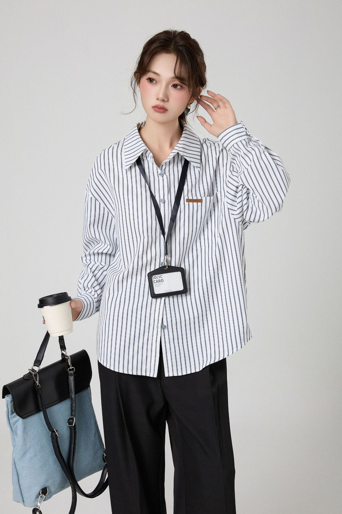 クラシックなストライプデザインとゆるっとしたリラックスシルエットが魅力の長袖シャツ。オフィスからカジュアルなデイリーコーデまで、幅広く着こなせる万能アイテムです。シンプルながらも上品な印象で、大人の女性にぴったり!