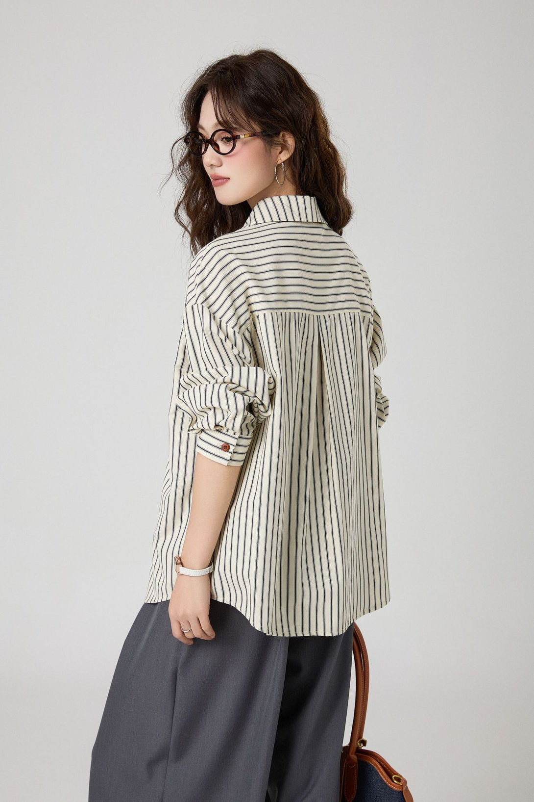ストライプシャツ 長袖シャツ レディース シンプルシャツ ルーズフィットシャツ オーバーサイズシャツ ワイドパンツコーデ ストライプ柄トップス クラシックコーデ カジュアルシャツ 通勤コーデ