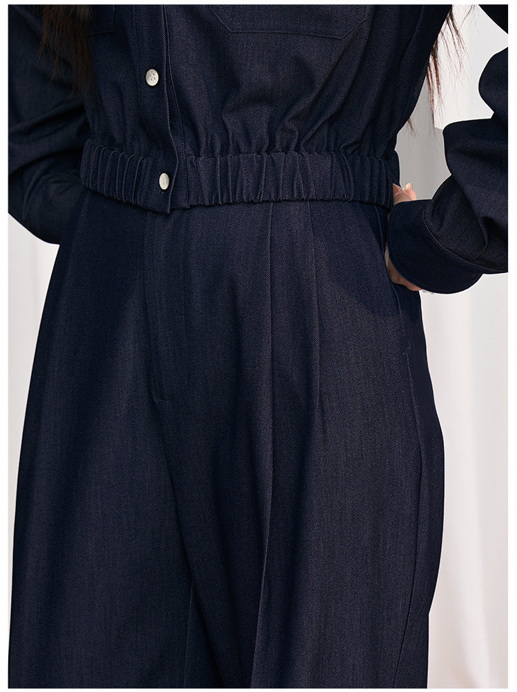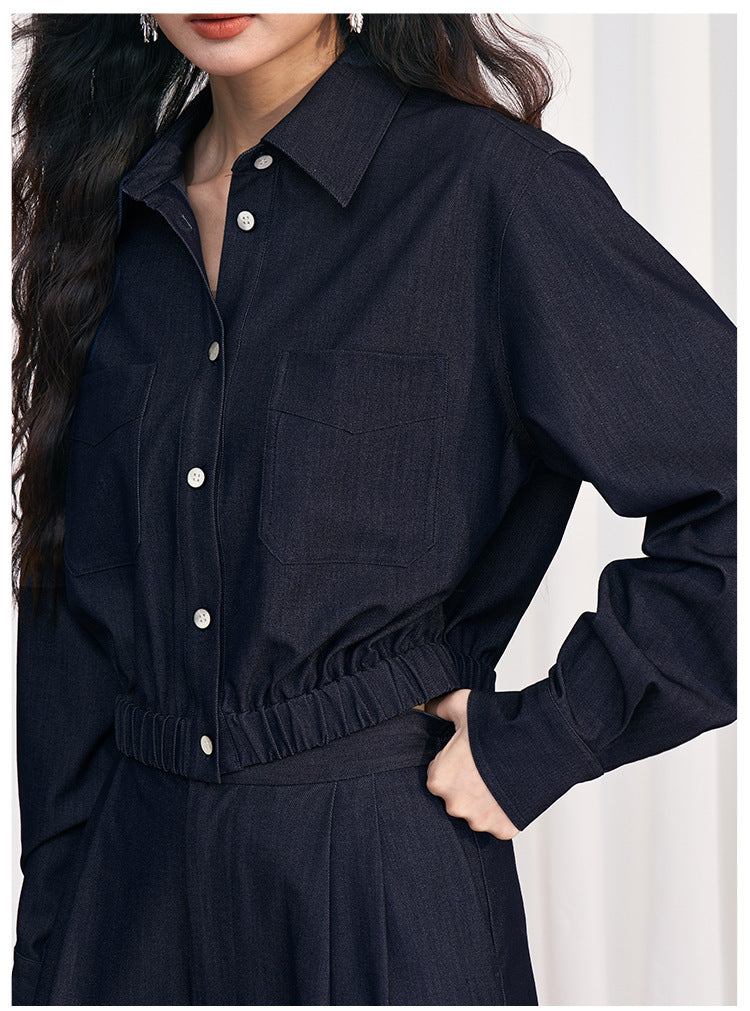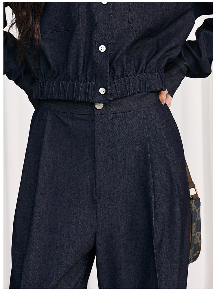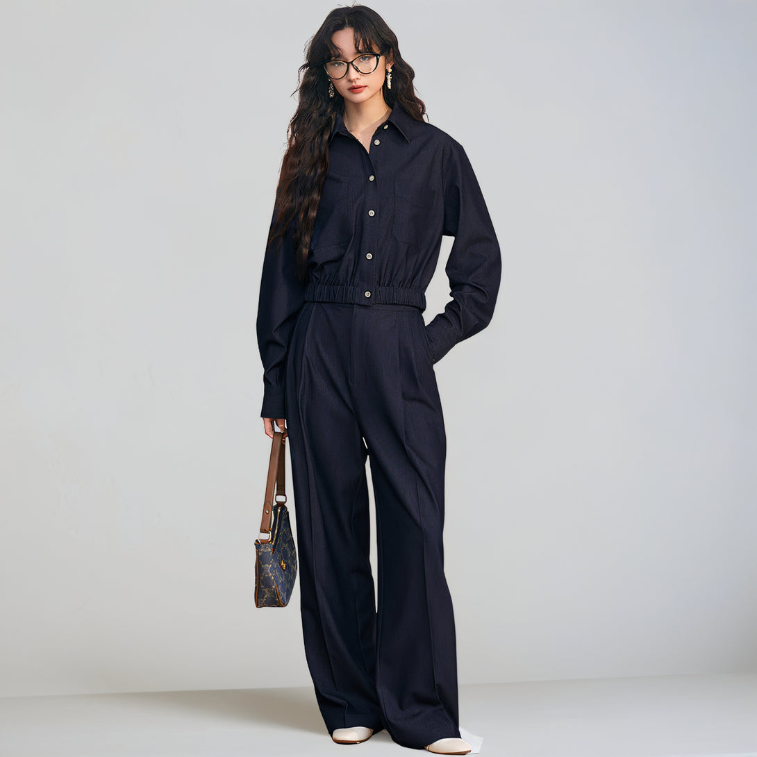 レトロデニムセットアップ – シャツ&ワイドパンツ(ネイビーブルー)