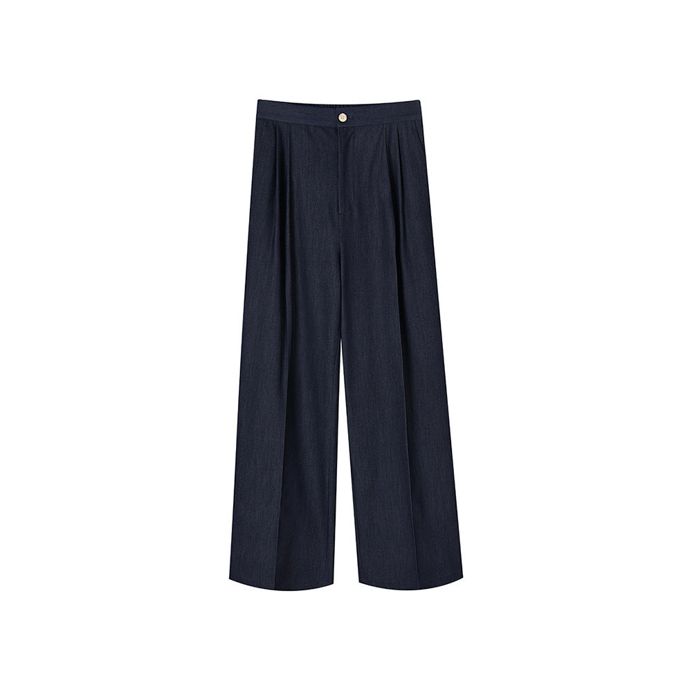 深みのある牛仔ブルーでスタイルを引き締めつつ、上品な印象に。 -
