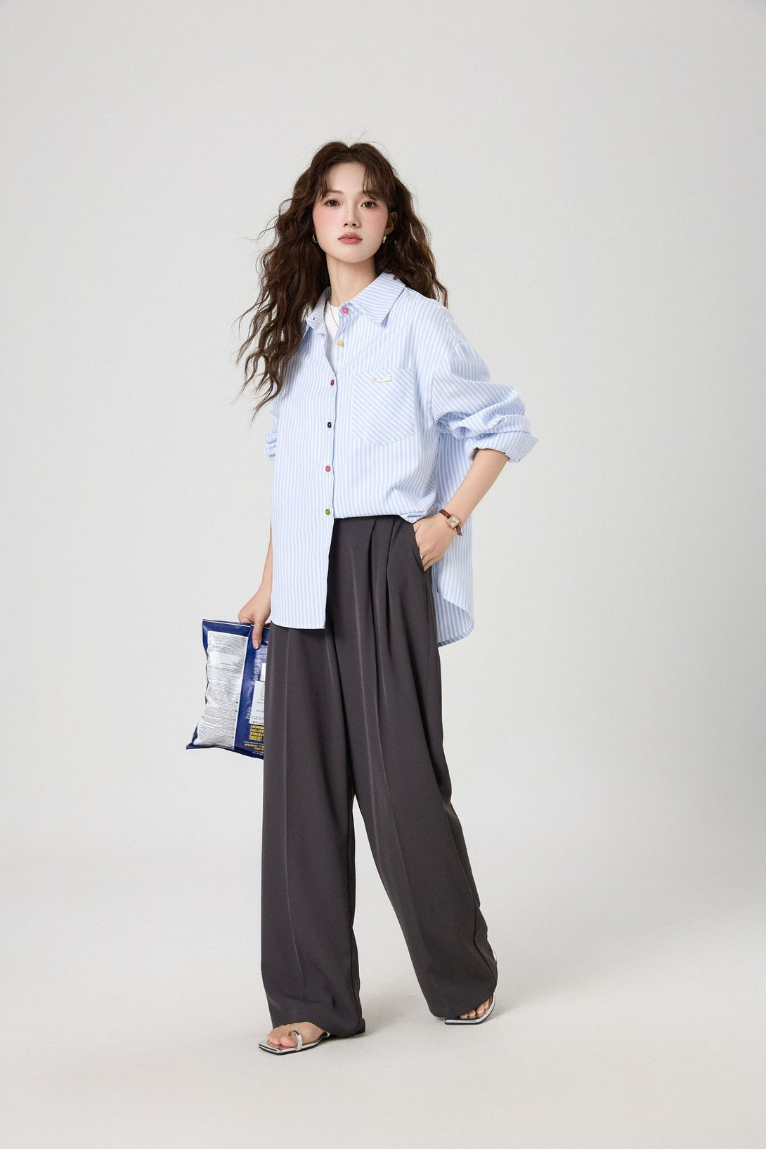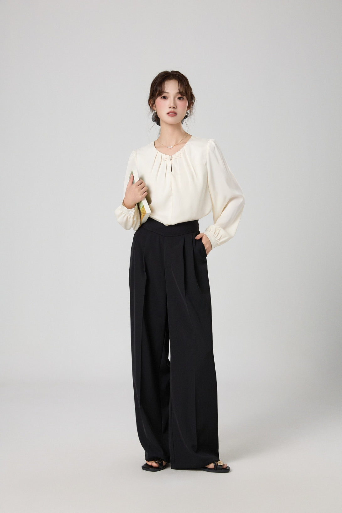 柔らかな落ち感のある素材で、きれいめにもカジュアルにも着回し可能。