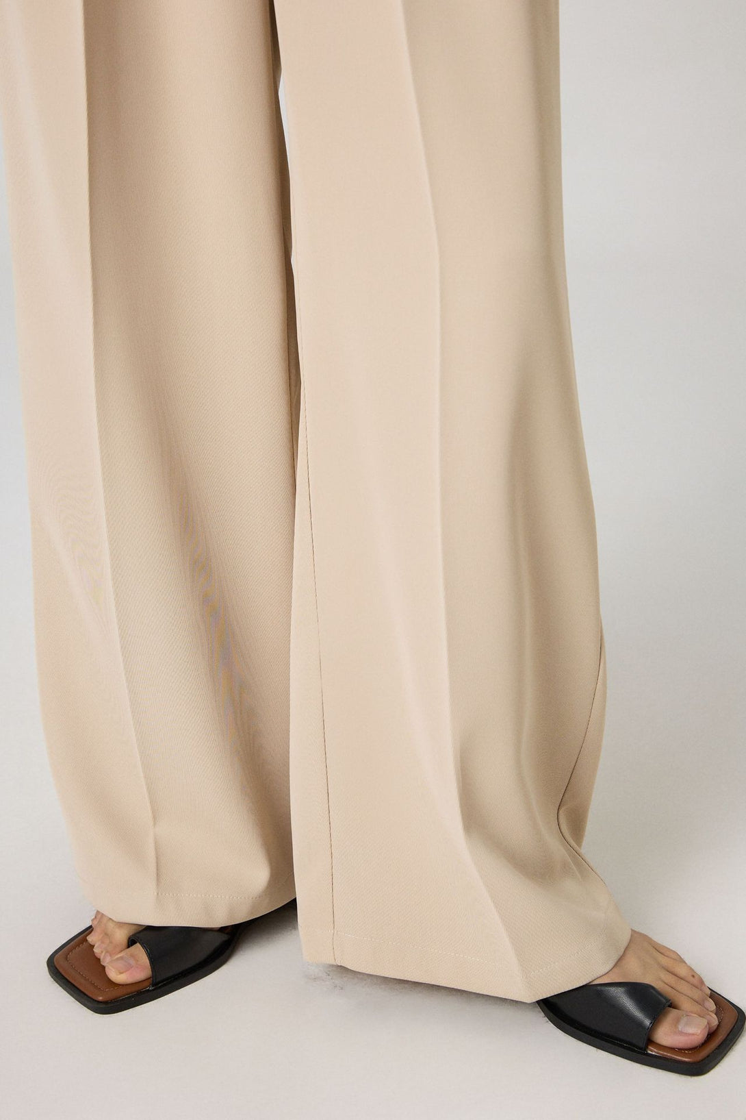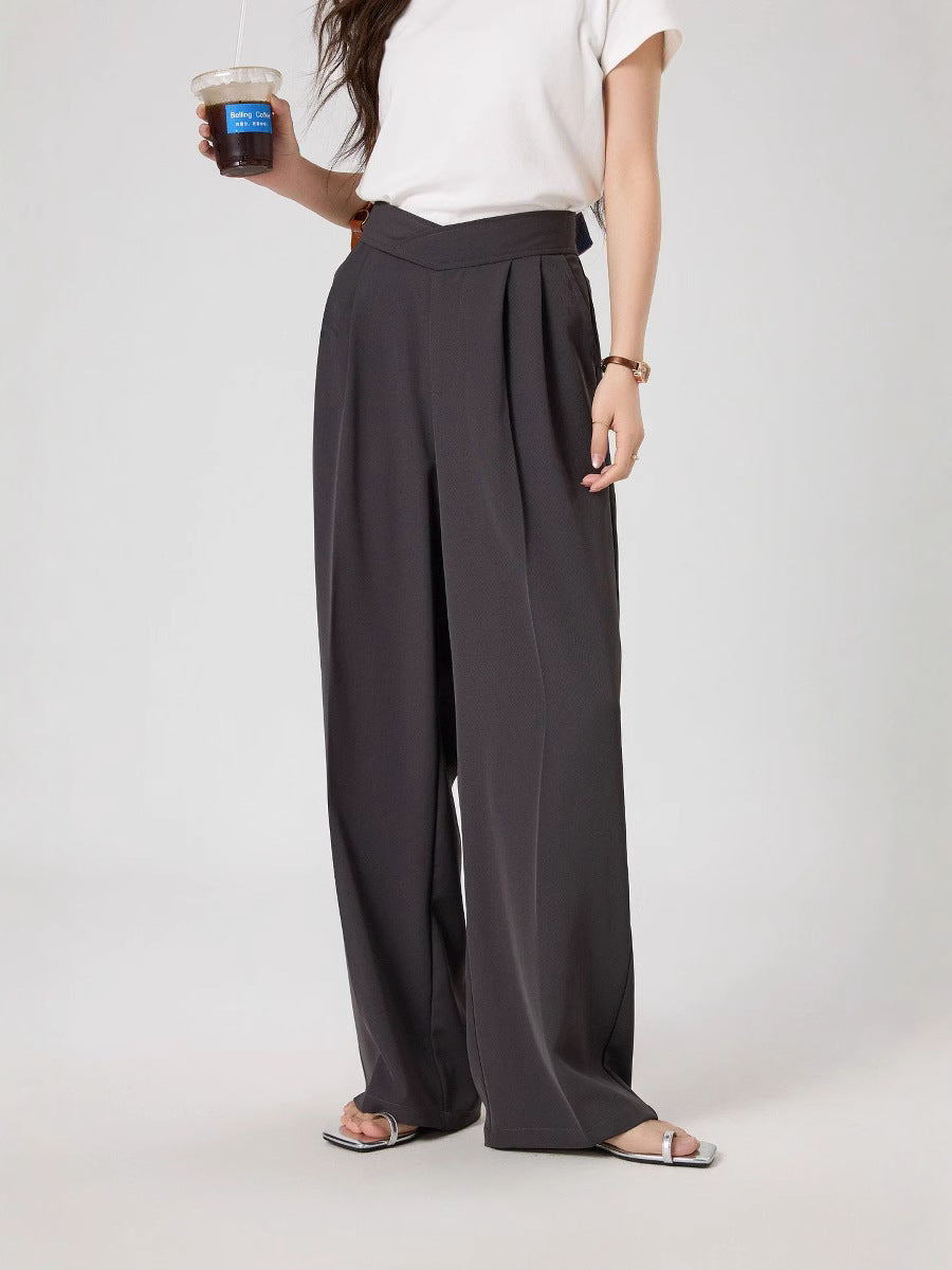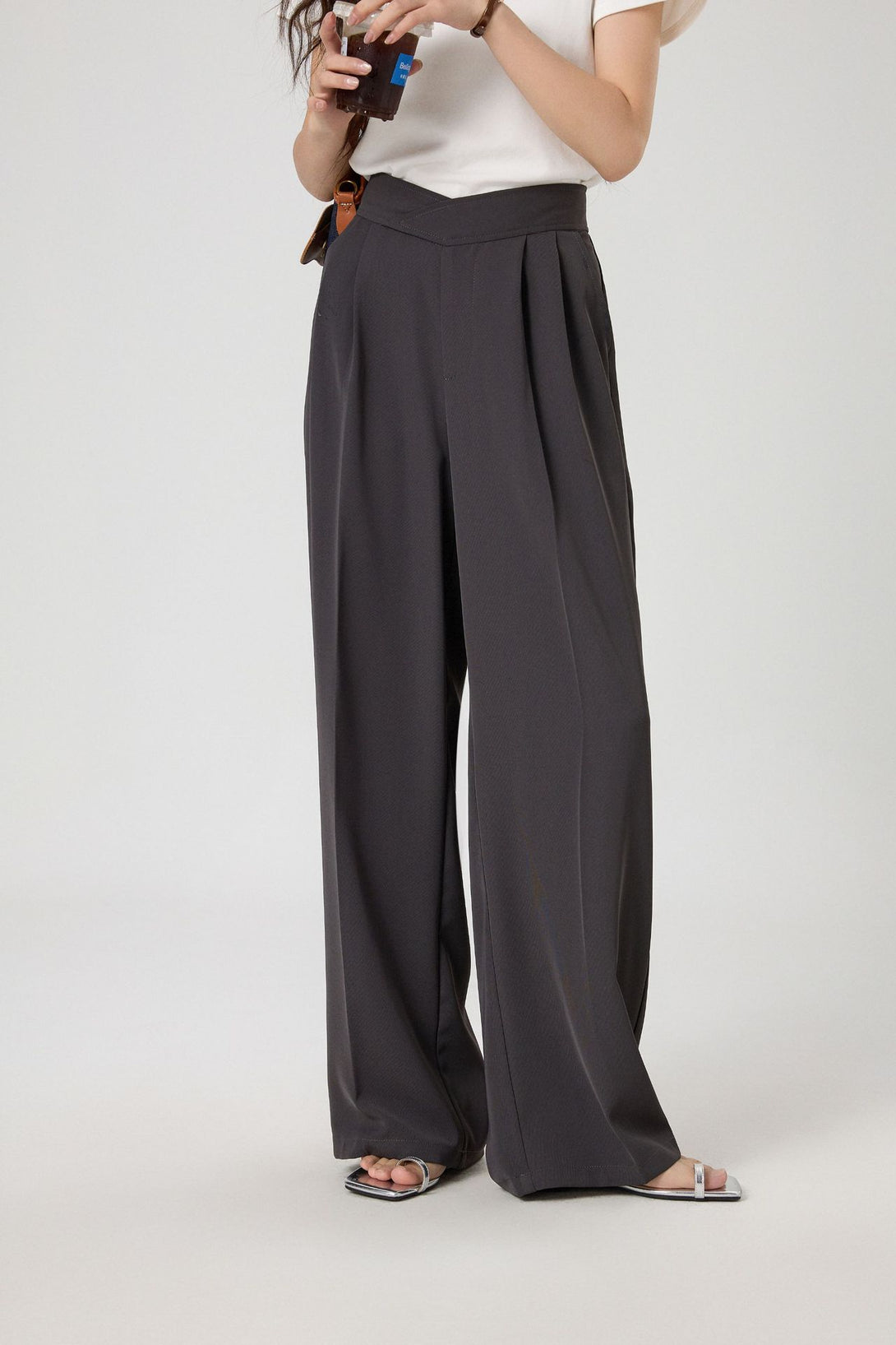 スタイルアップが叶う、ハイウエスト仕様の美脚ワイドスラックスパンツ。