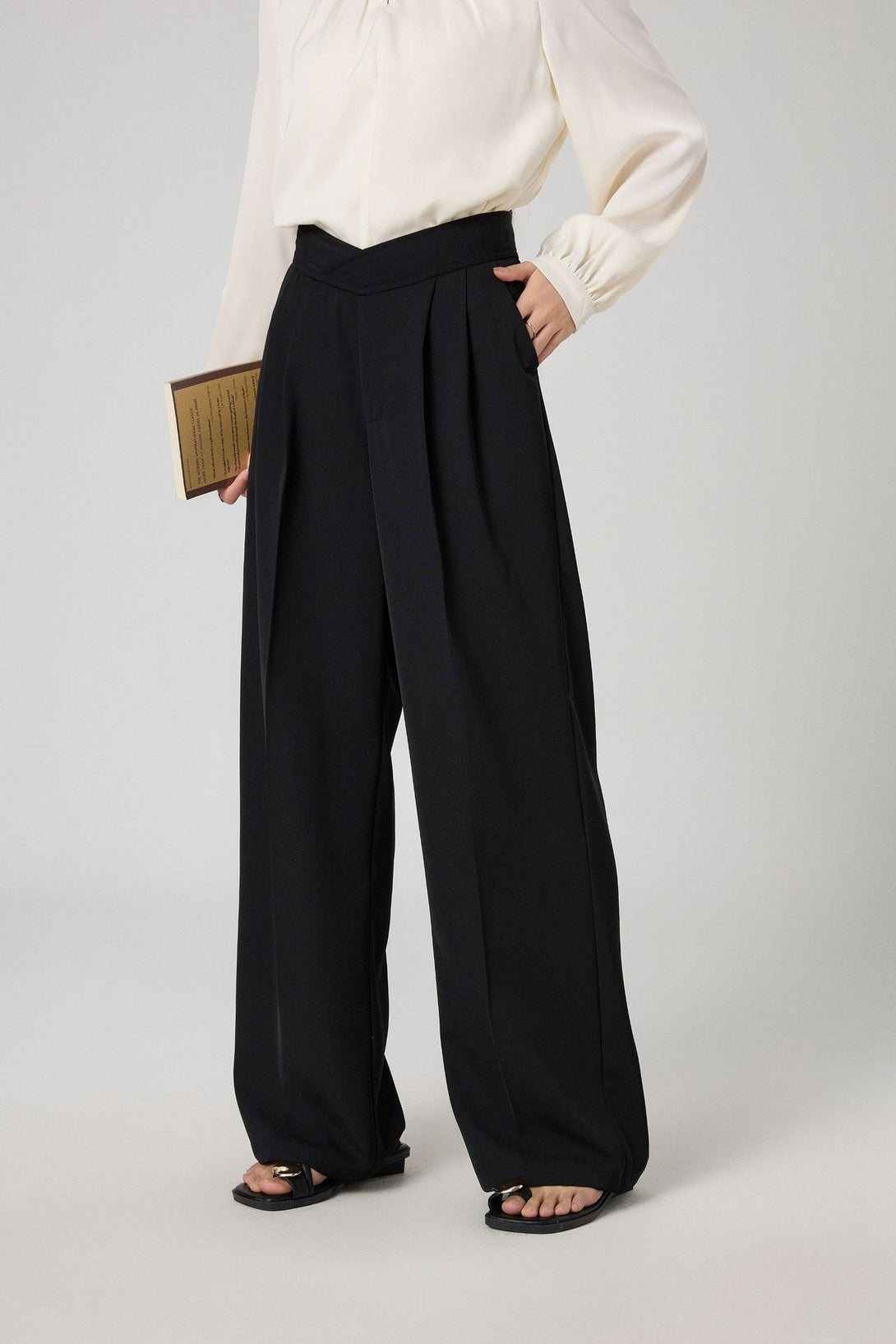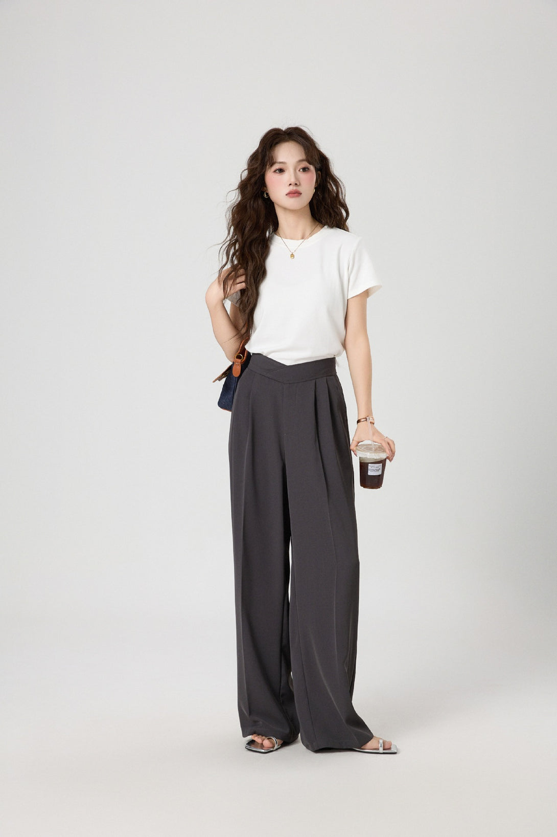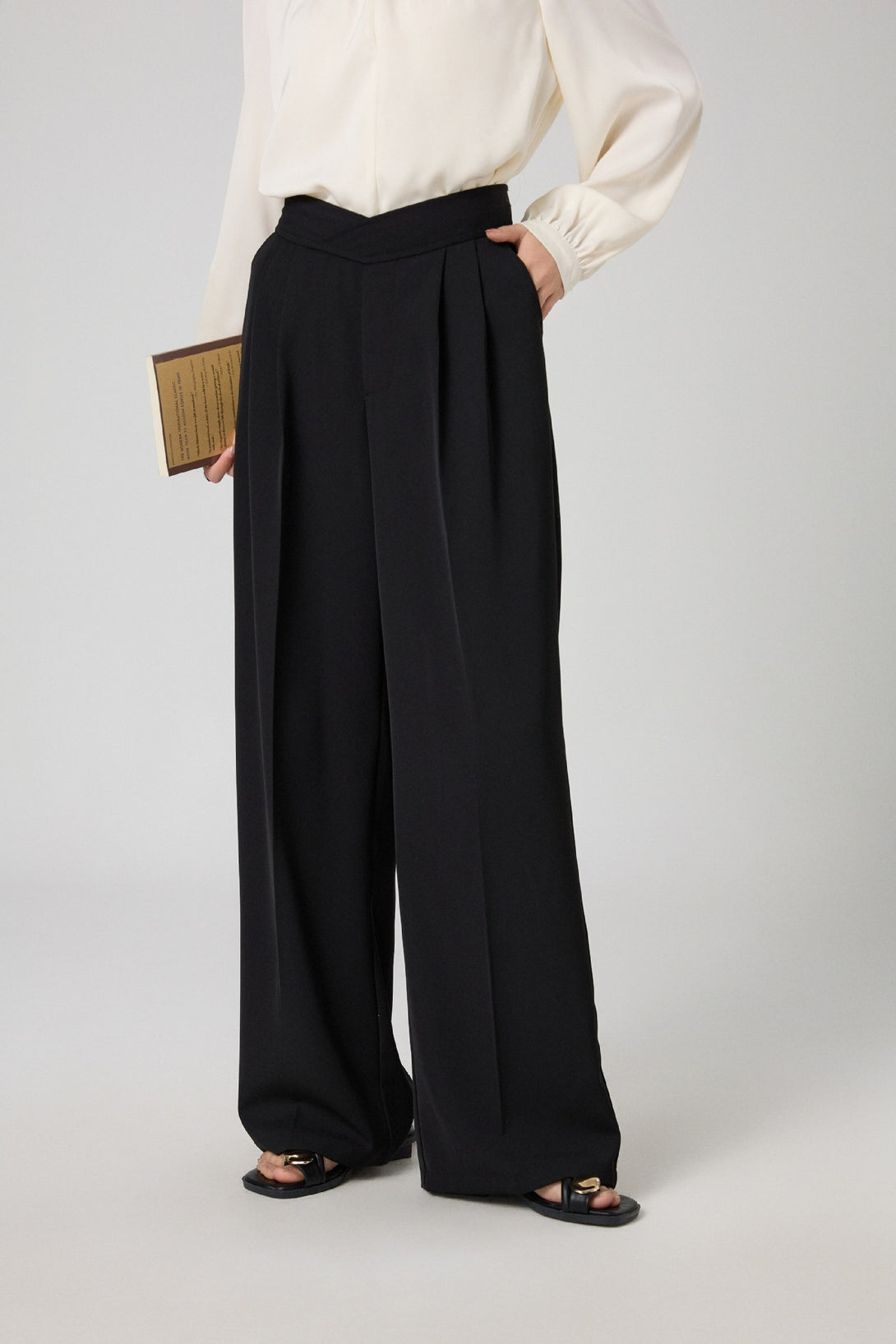 スタイルアップが叶う、ハイウエスト仕様の美脚ワイドスラックスパンツ。