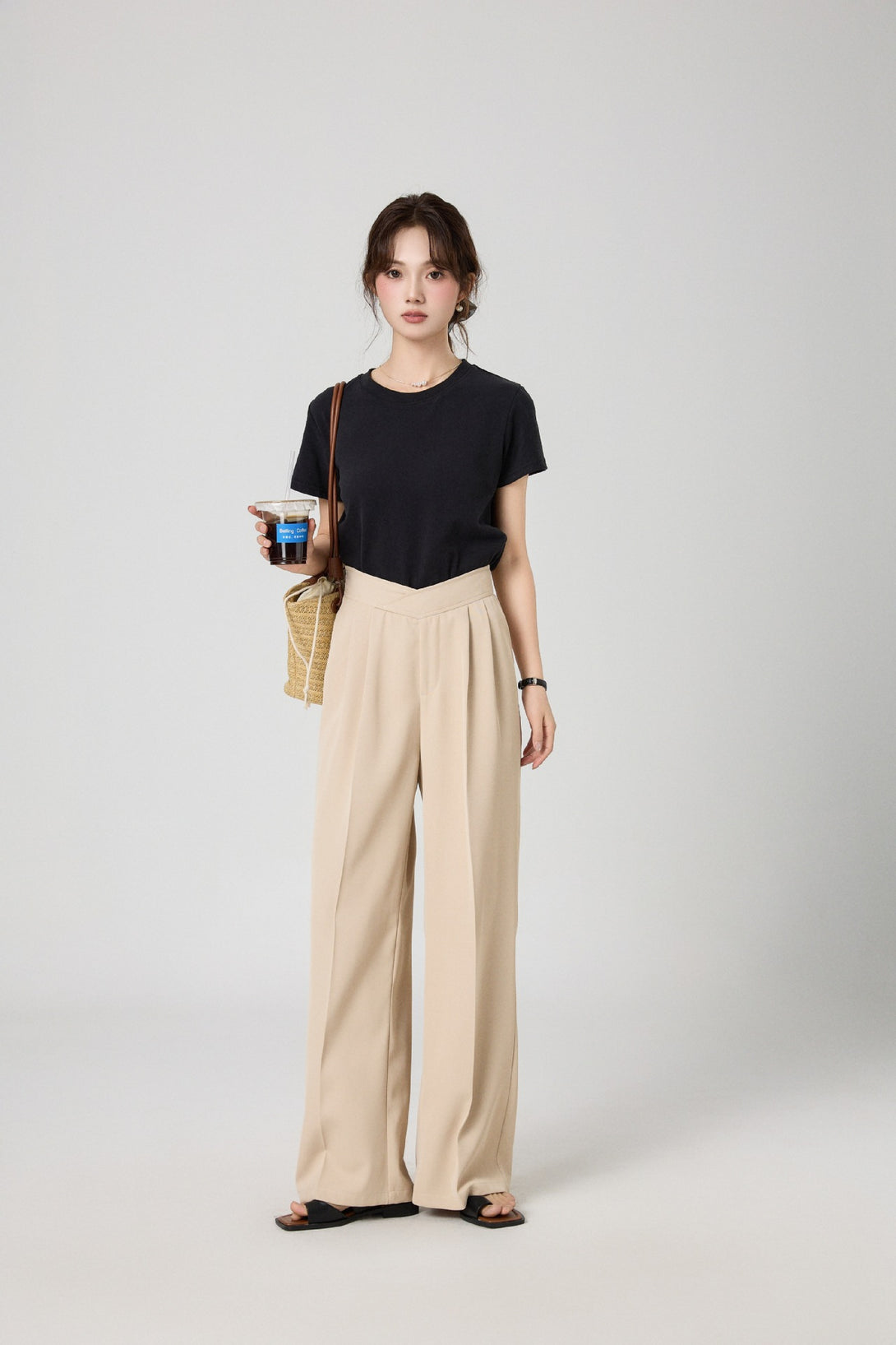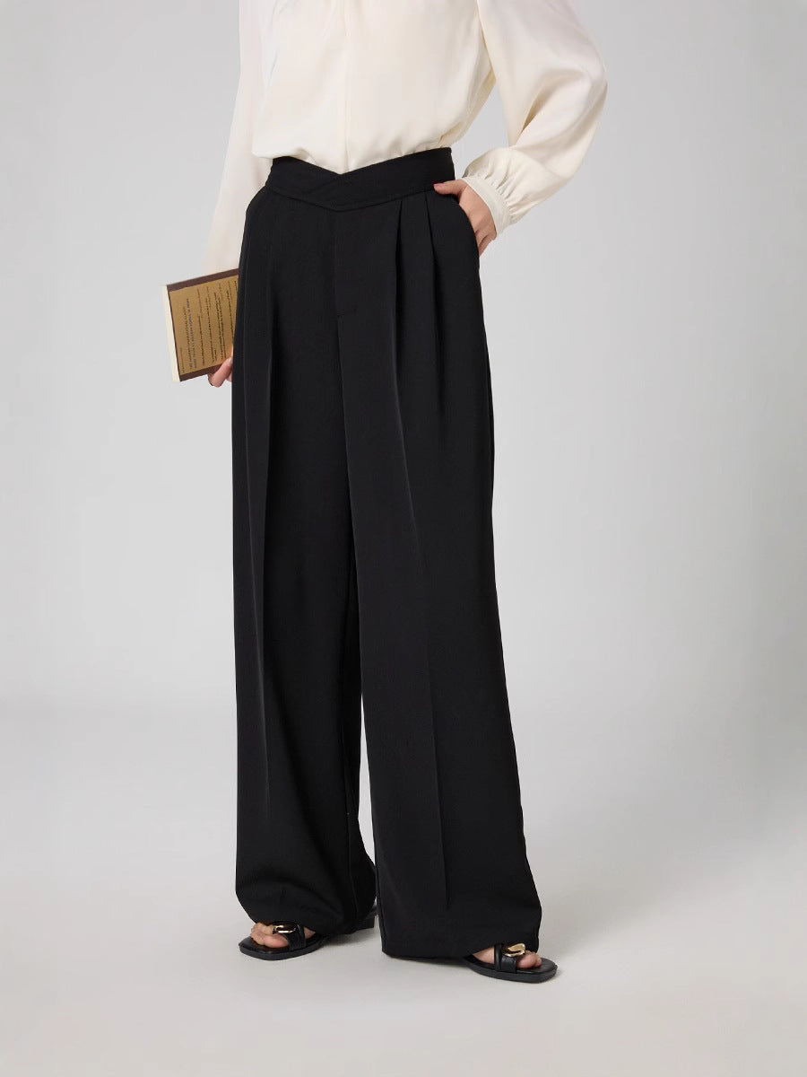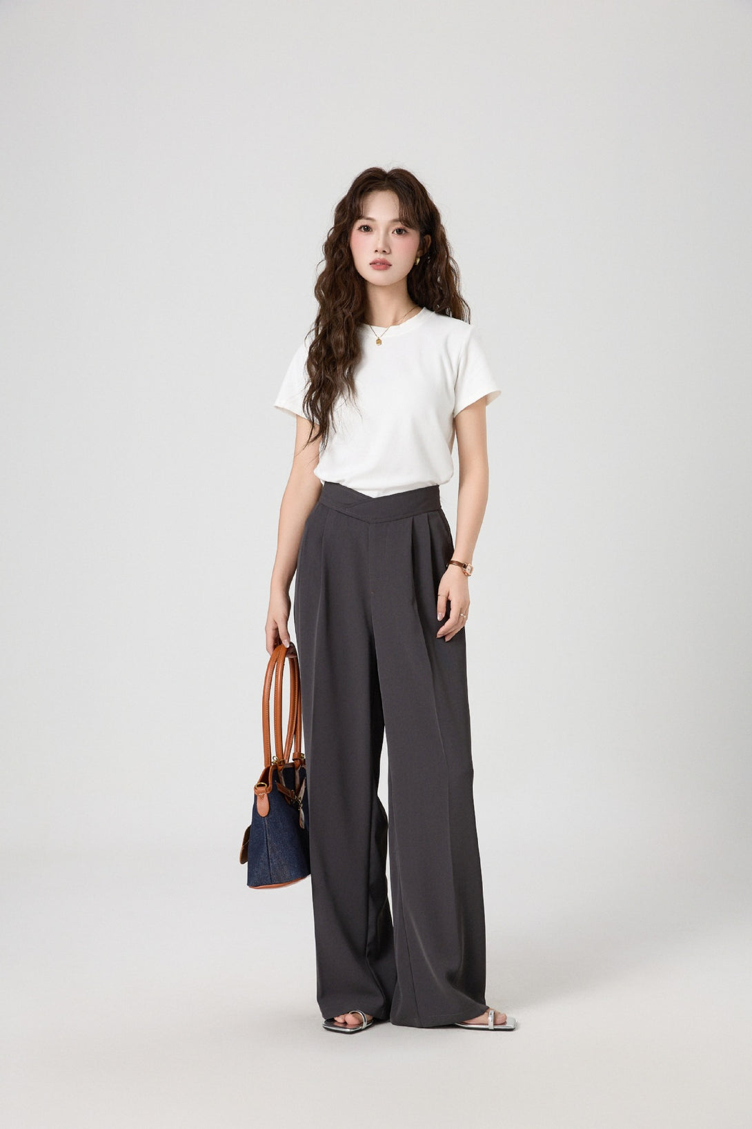 腰回りをすっきり見せるタック入りデザインで、脚長効果も抜群。