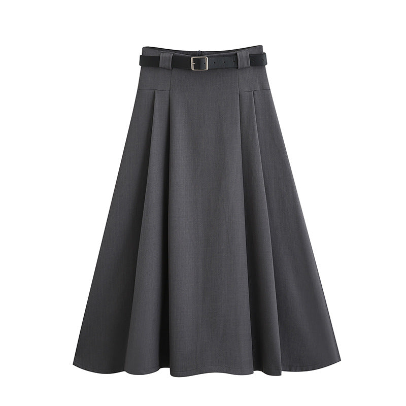 スカートは程よく広がるフレアシルエットで、女性らしさと動きやすさを両立しています。
