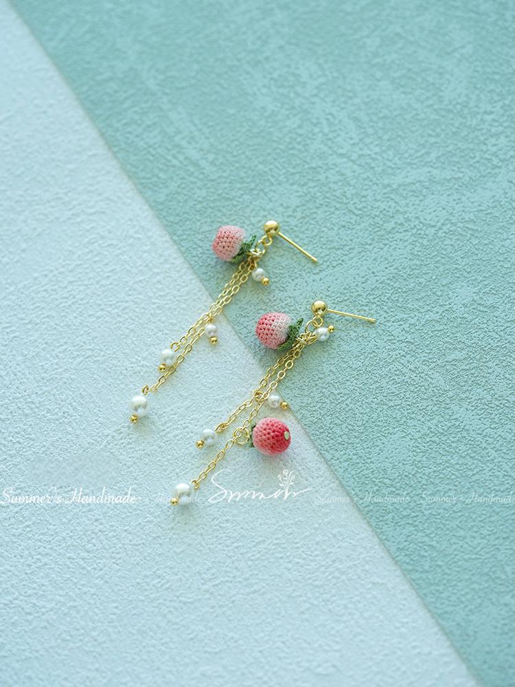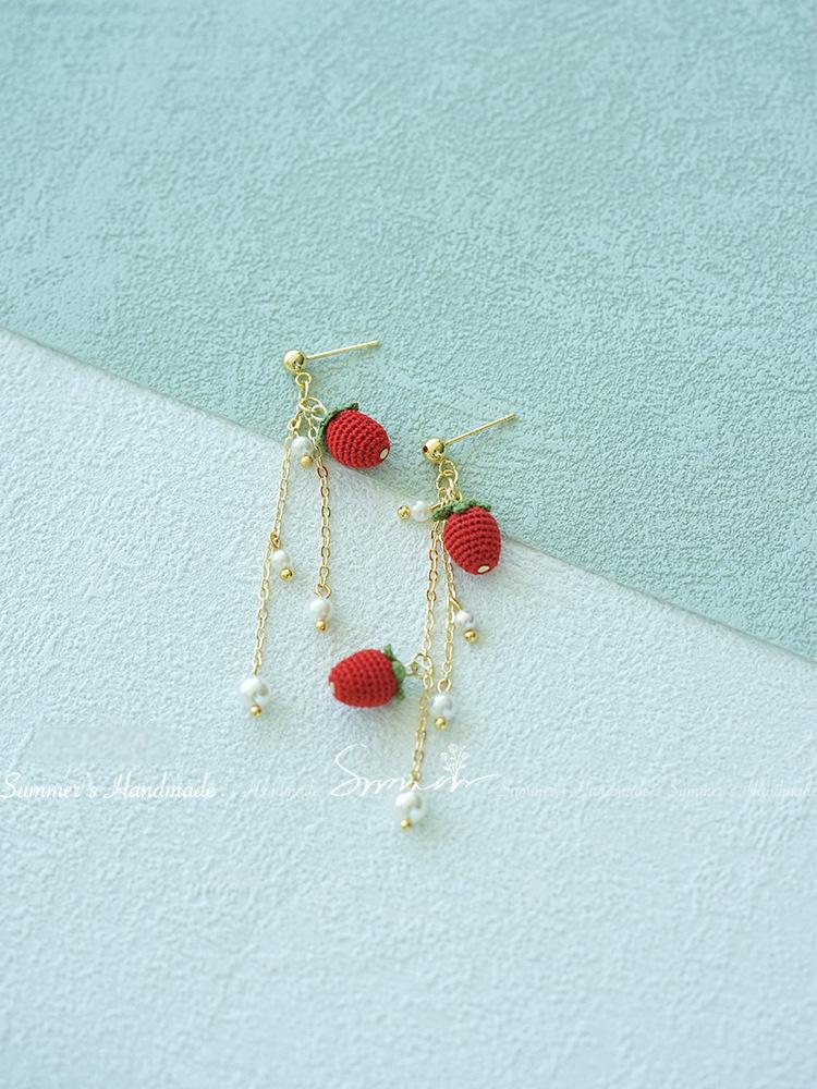 耳元でふんわり揺れる、いちごのチェーンイヤリング。