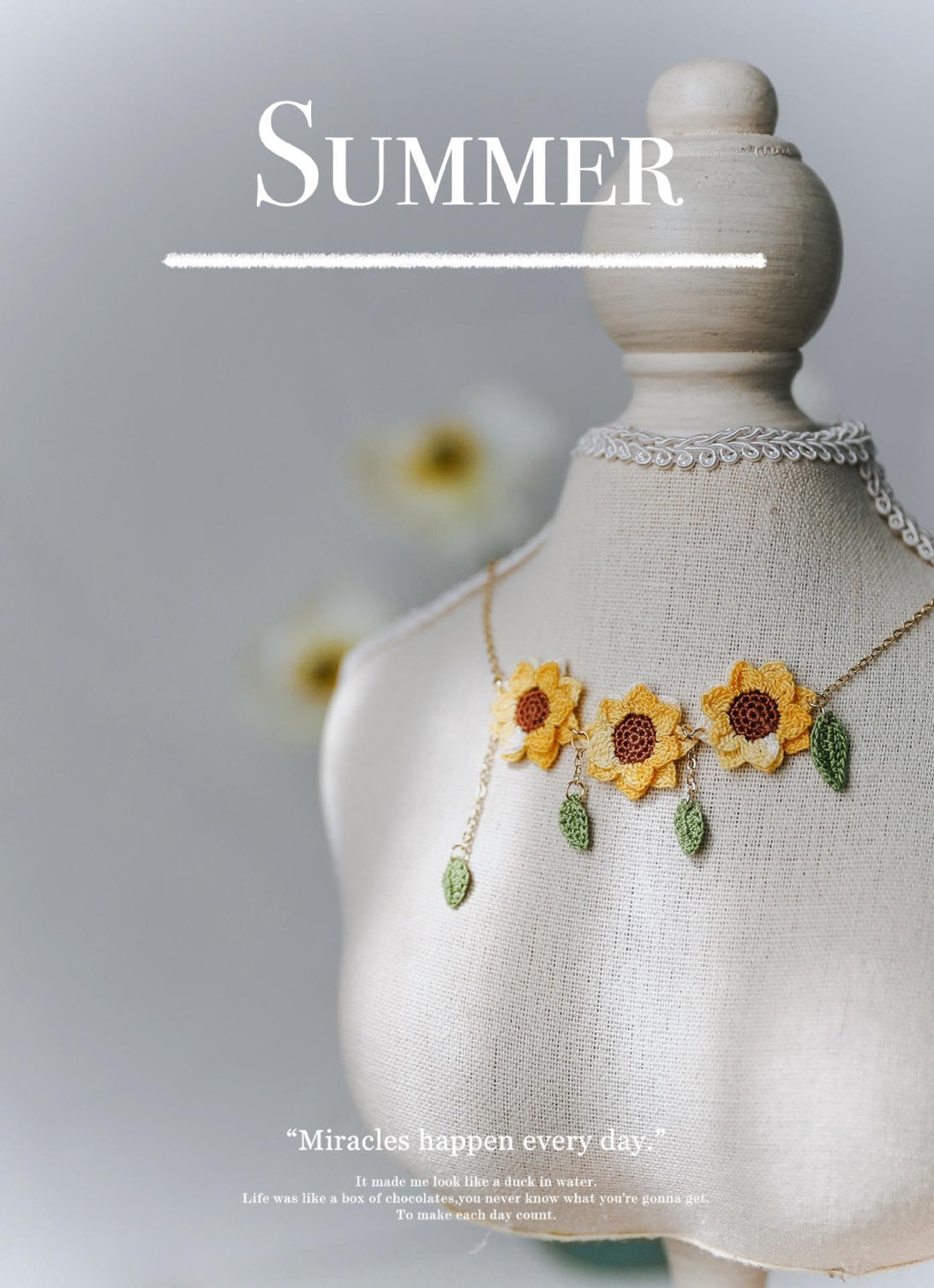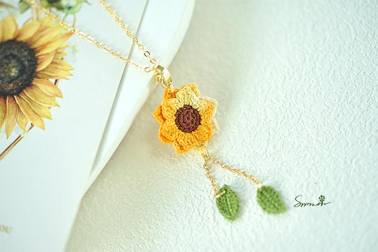 手編みひまわりネックレス – 夏を彩る可憐な花モチーフジュエリー