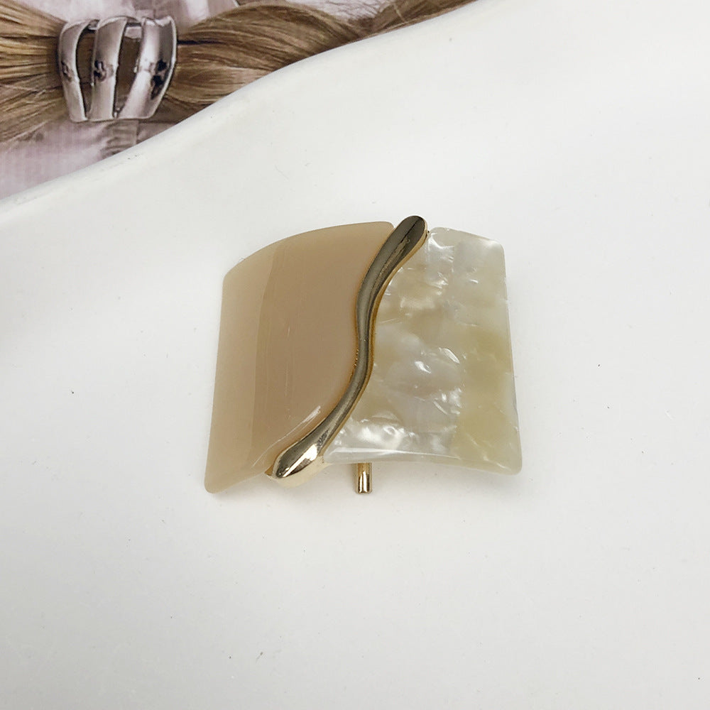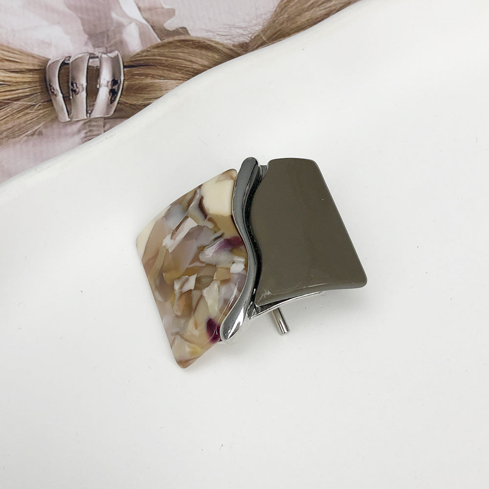 マーブル柄と艶やかなカラーパーツを組み合わせた、洗練されたデザインのヘアアクセサリー。